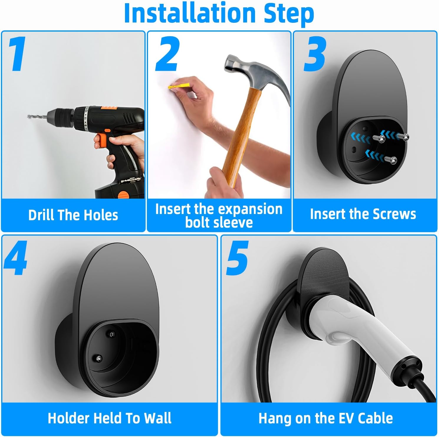 Der Ladeleitungshalter besteht aus hochwertigem ABS-Material, das eine hervorragende Verarbeitungsqualität aufweist. Er bietet ausgezeichnete Wärmeableitung und Erdungsleistung und garantiert eine lange Lebensdauer. Mit seiner Wetterfestigkeit eignet sich der Halter sowohl für den Innen- als auch Außeneinsatz.