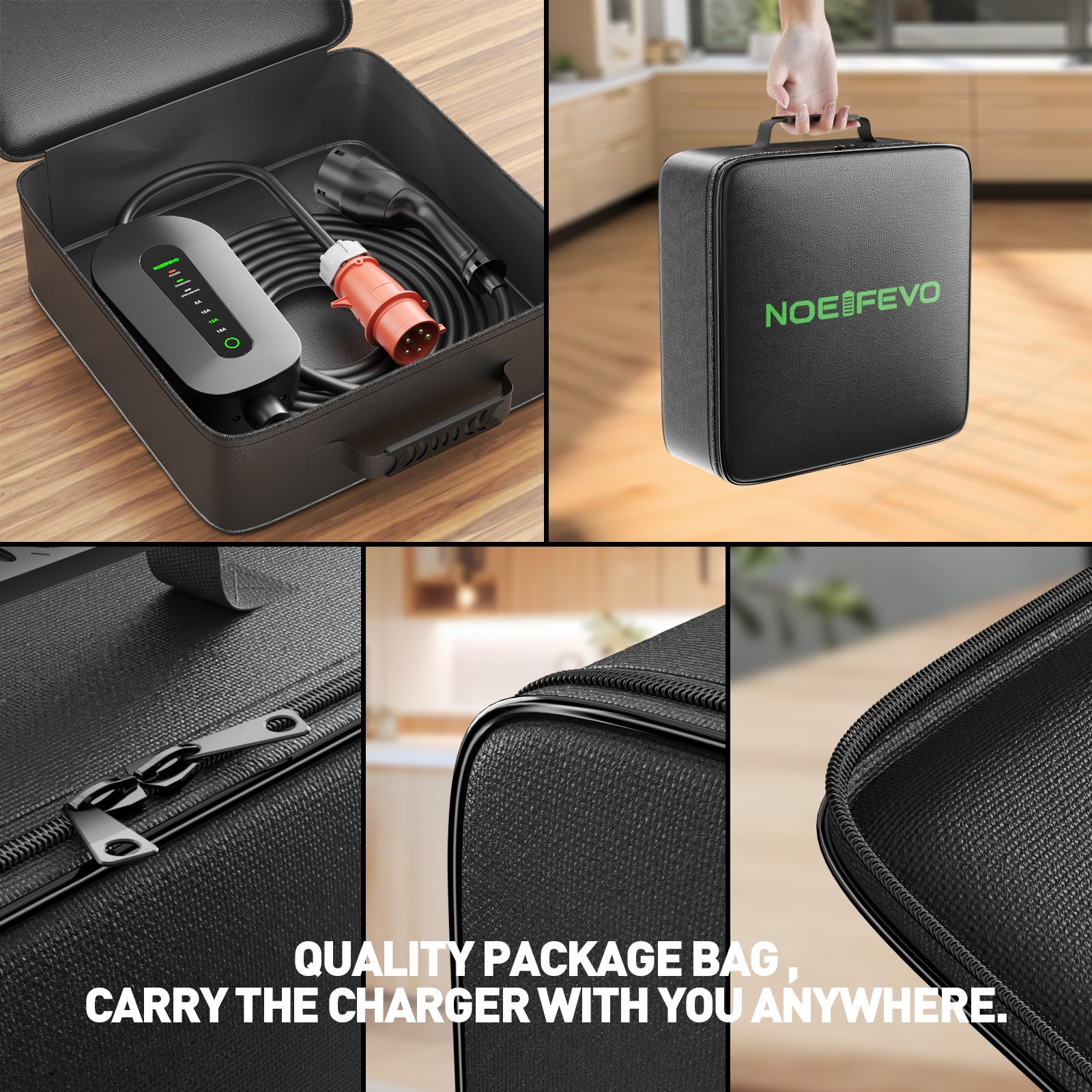 NOEIFEVO EV Wallbox 11kW, Mobile Ladestation 3-Phasen 400V (6-16A einstellbar), Type 2 Ladekabel mit EU-Reiseadapter (CEE32/CEE16A/Schuko/Type2 Stecker), für Model Y/3, ID.3/4/5, MG4, EX30, Zoe und andere PHEV/EV.